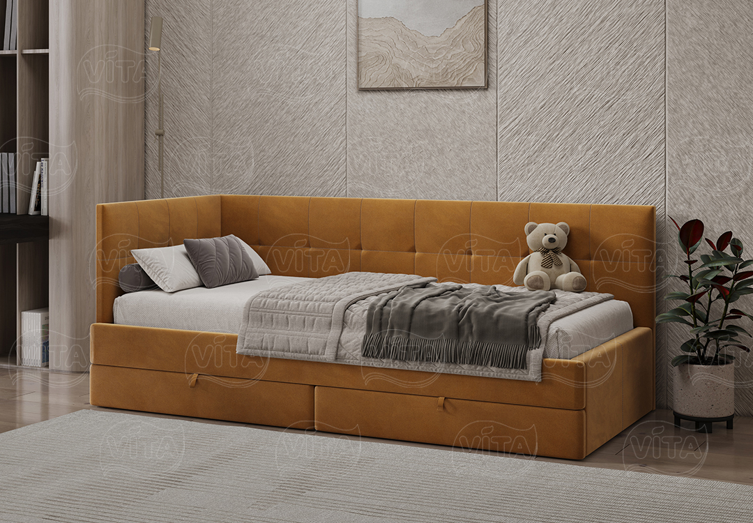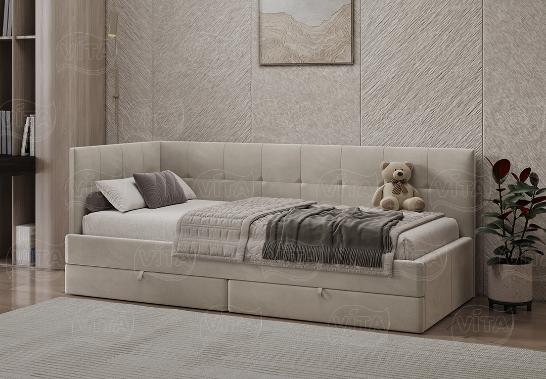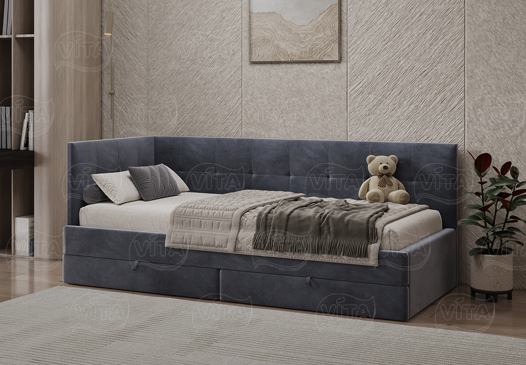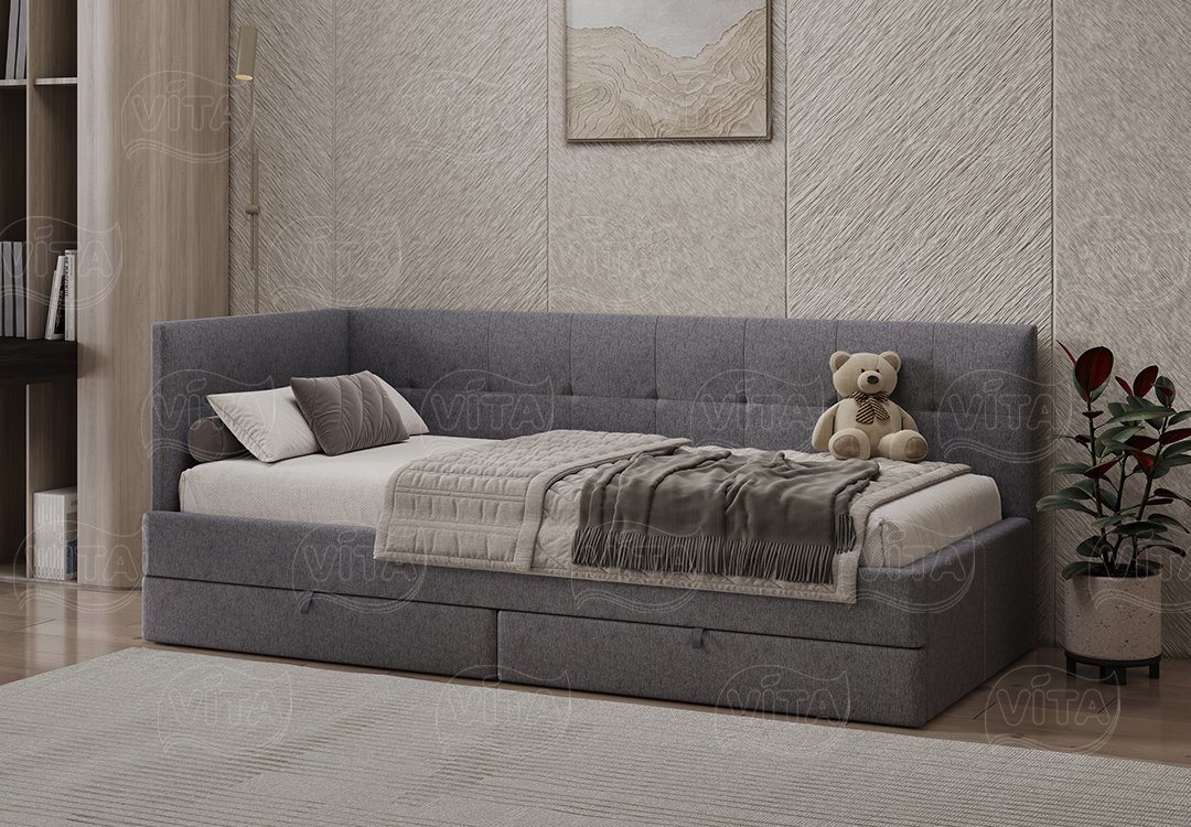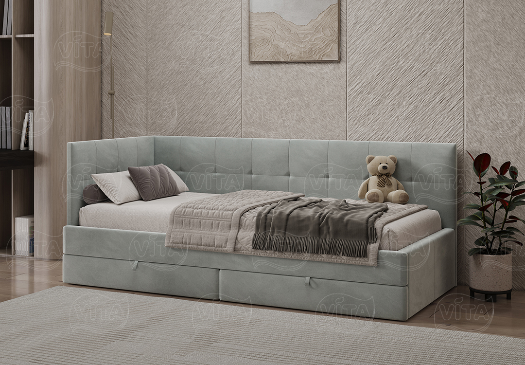 Односпальная кровать «Алиса» – универсальное решение для детей и взрослых. Выдерживает до 120 кг. Прочное основание-щит подходит для матраса любого типа. Оснащена двумя мобильными ящиками на колесах для хранения.