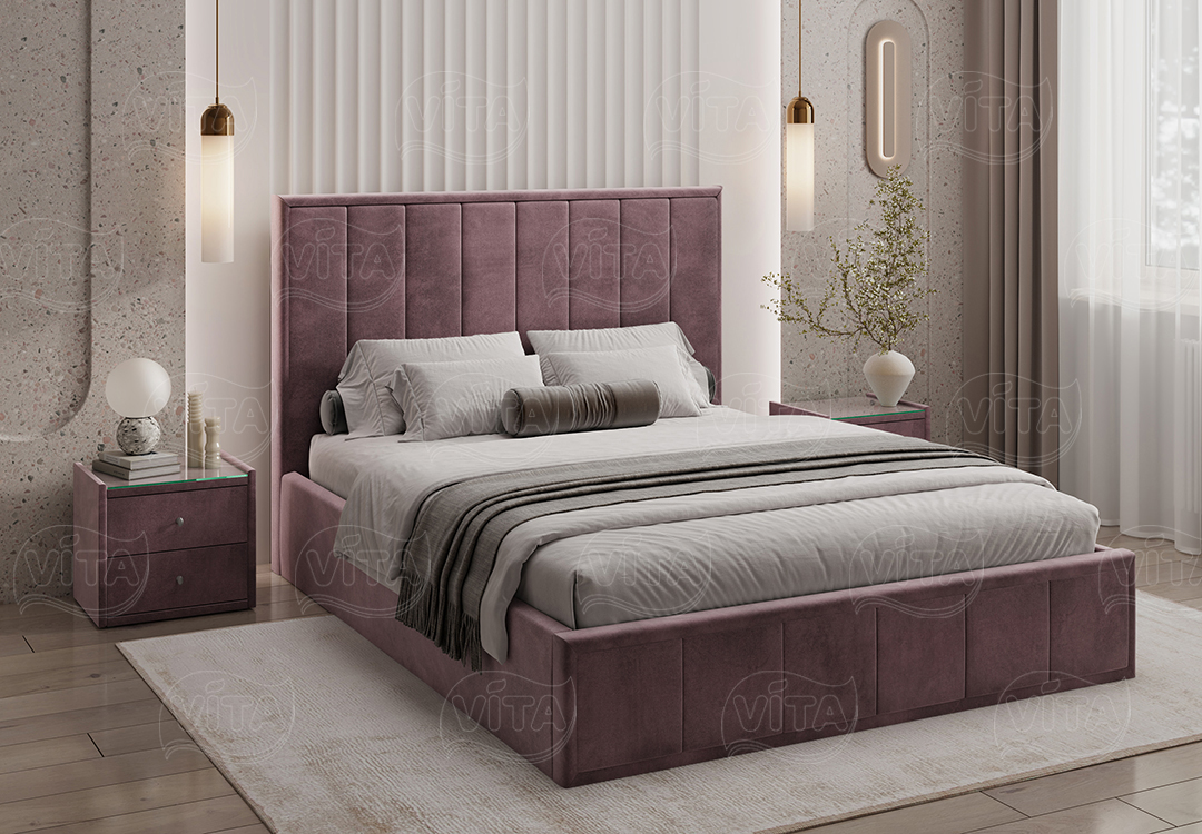 Кровать Грация с ортопедическим основанием и механизмом подъема. Бельевой ящик с надежным дном. Обивка из износостойкой ткани различных цветов и фактур.
