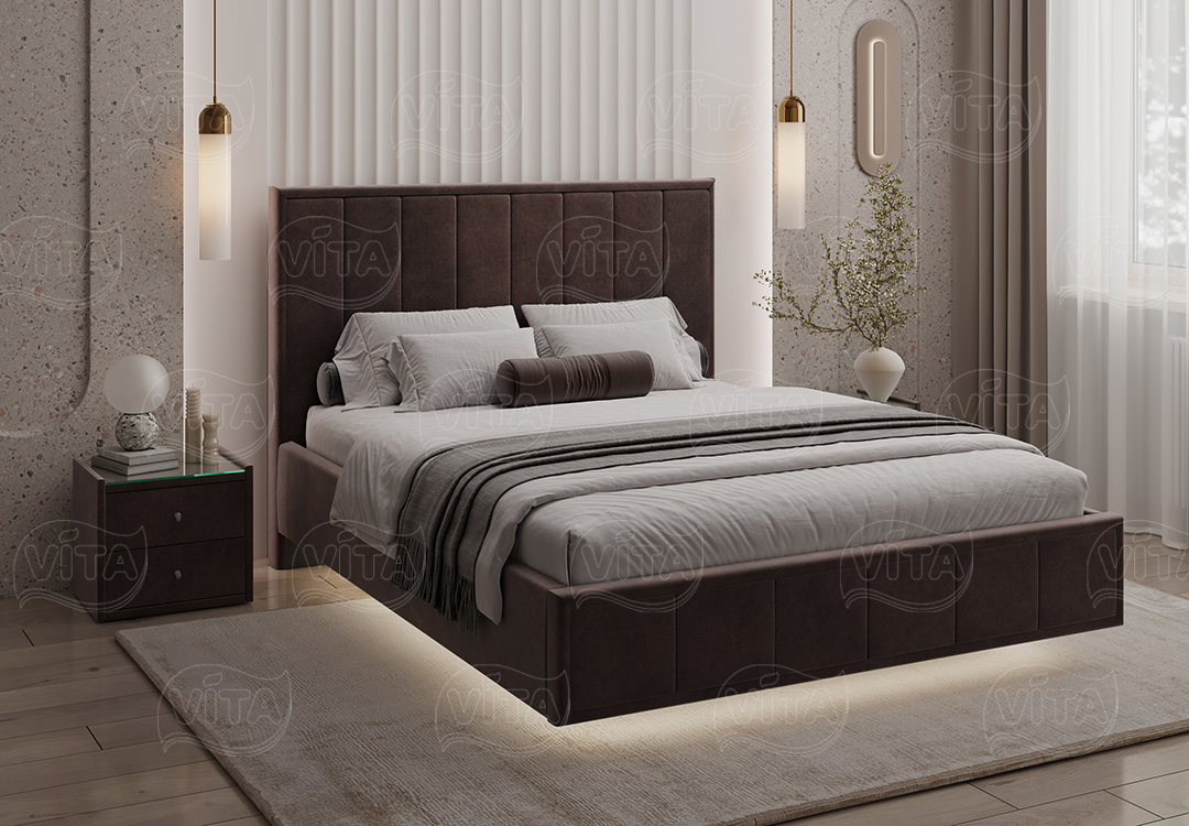 Кровать “Николь” парящая – воплощение стиля и роскоши. Вертикальная стежка на изголовье создаёт выразительный образ и визуально увеличивает пространство Вашей спальни по высоте.